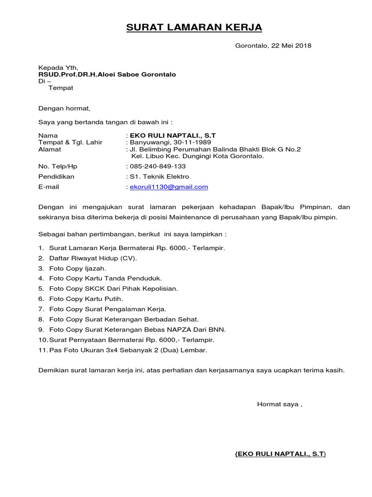 Contoh surat lamaran kerja tanpa pengalaman kerja. Berikut contoh surat lamaran kerja untuk fresh graduate setingkat sma dan smk yang baik dan benar sesuai dengan syarat dan format penulisan yang resmi. Selanjutnya kita di sini akan membahas tentang berbagai contoh surat lamaran kerja yang dapat dijadikan referensi dan contoh untuk melamar suatu pekerjaan. Maka, tentu bekerja menjadi hal yang wajib bagi anda. Contoh surat lamaran kerja sebagai security diatas merupakan salah satu contoh dari surat lamaran kerja untuk di puskesmas. Contoh surat lamaran kerja di perusahaan umum ii. Contoh surat lamaran kerja yang baik dan benar selalu menjadi solusi kamu yang ingin melamar pekerjaan disuatu perusahaan atau instansi pemerintah. Dan berikut kami akan memberikan contoh surat lamaran kerja lengkap. Pada dasarnya membuat surat lamaran kerja tidak sesulit yang dibayangkan, dengan format, contoh dan referensi yang tepat semua. Jika anda membutukan contoh surat lamaran kerja umum, anda bisa coba baca beberapa referensi yang telah kami buat dari text dan dengan gambar. Hal ini agar surat lamaran kerja anda dilirik oleh pihak perusahaan. Contoh surat lamaran kerja yang baik dan benar untuk dijadikan referensi dalam usaha mencari kerja di sebuah perusahaan sesuai dengan keahlian kamu. Contoh surat lamaran kerja menjadi bidan ini dapat anda gunakan untuk melamar pekerjaan di berbagai tempat yang membuka lowongan pekerjaan mengenai bisan yang biasanya tersebar hampir di seluruh indonesia yang membutuhkan jasa sebagai bidan di setiap klinik atau rumah sakit ternama.